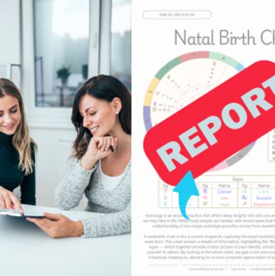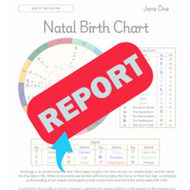 You’ll also receive a personalized chart report summarizing your unique astrological makeup for continued reflection and growth.
